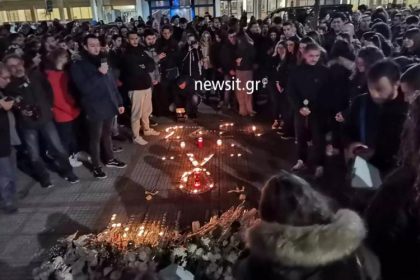 Άφησαν λουλούδια και άναψαν κεριά στον σταθμό του ΟΣΕ της Λάρισας