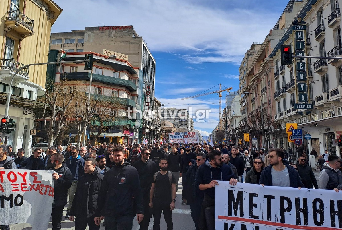 Σε εξέλιξη είναι αυτήν την ώρα μεγάλη πορεία διαμαρτυρίας στο κέντρο της Θεσσαλονίκης για την τραγωδία στα Τέμπη που στοίχισε τη ζωή σε 57 επιβάτες.